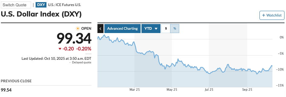 The U.S. dollar, once the world’s ultimate safe haven, is losing altitude. In 2025, the Dollar Index slid about 10%, even amid global uncertainty.